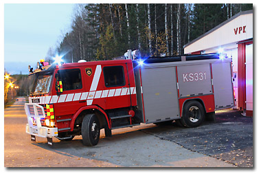Palokunnan autona toimii Scanian sammutusauto vuosimallia 1988.